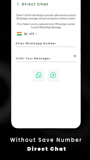 direct Chat for WhatsApp is based on the official open api of WhatsApp, and help users to send direct message to someone not in your contacts. It's simple & safe to use.
