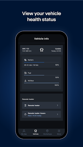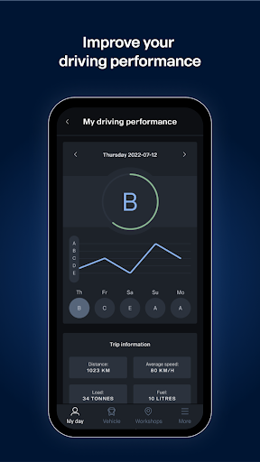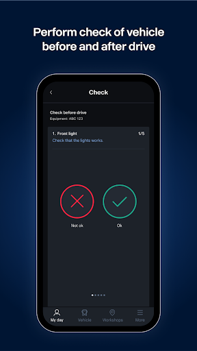 With the help of the app, you can be sure that the vehicle is in good condition, safe and ready for the next trip. The app also helps you improve your driving so that you minimise emissions and contribute positively to your company's results.