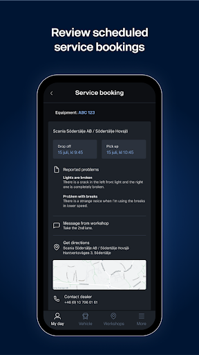 Stay one step ahead and plan your working days by receiving reminders before future service events. The reminders contain times for drop off and collection, workshop address and contact information.