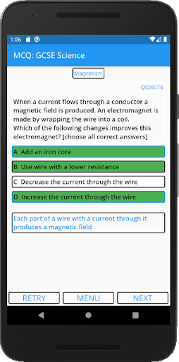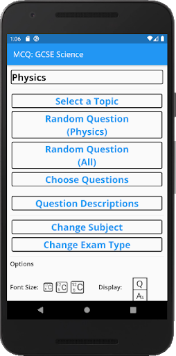 Choose specific questions or have it pick randomly by topic, subject, or from all three sciences*