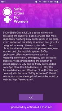 S-City application offers many functions such as mapping, safety alert, emergency call, assessing public services, and reporting the situation of sexual assault. S-City can be freely downloaded from