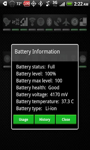 Once clicked it shows the current status of the battery.