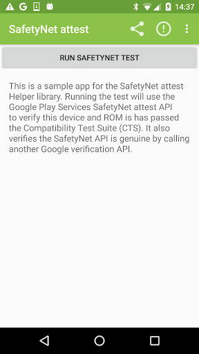This sample app will check if your device passes the Google SafetyNet CTS test