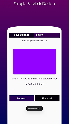Scratch And Win Real Cash - Scratch Card And Win Are Depends On The User's Luck. Focuses In Cards Opens Randomly. In Scratch and Win Real Cash App You Will Get Unlimited Scratch Cards In Whole Days But We Can Be Set Limit Of Scratch Cards in Future. Clients Can Be Get More Points As A Gift If User Will Refer Your Friend and Families.