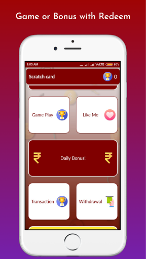 Daily Scratch various Scratch Card by Lucky Win Scratch Cash App. Free Download! - User can use app easily with earn rewards. All Scratch Card earning is depend on your luck! This app is for entertaining purpose only. So, User will get nice feeling to scratch card app or game.