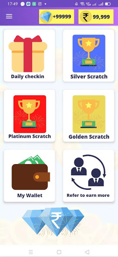 Scratch and Win App Is Designed For User's Entertainment Purpose. Clients Can Get Some Virtual diamond In This App Only By Scratching Some Cards.