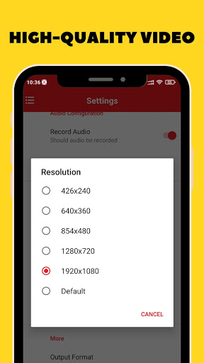 This screen recorder has many custom functions, such as setting the video resolution: 1080p resolution is provided. Auto screen orientation: Provide both portrait and landscape recording. Set the countdown time and shake to stop...