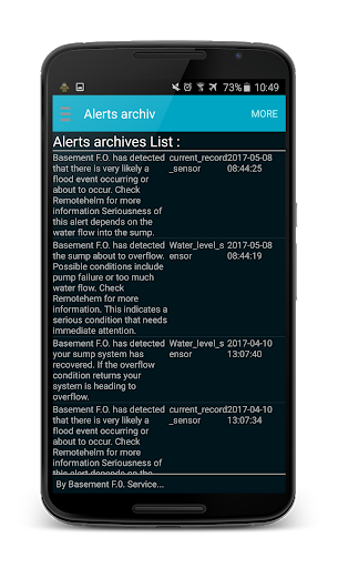 The included free smartphone application gives complete control of Basement F.O. and displays generated graphs and pump operation information. It can be installed by downloads (for multiple devices) by logging in and clicking the Google Play™ store icon or by going to the Google Play store and searching for Basement F.O.
