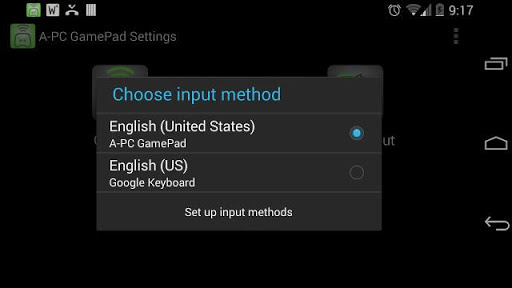 Click on Switch Input Method, make sure APCGamePad is selected.