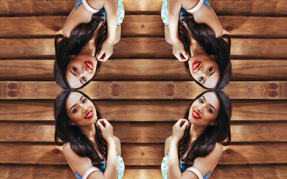 Mirror Photo Editor allows you to create mirror effect with your photos. You can create left -right, up - down, reflection, repeating reflection style photos with