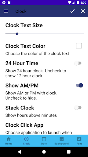 ** If you cannot see clock or date on widget resize the widget or the text sizes to a smaller size**