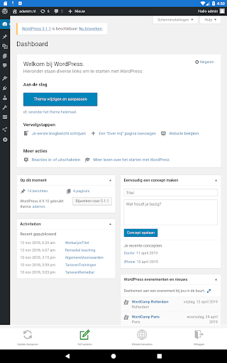 Even een blog toevoegen of wat tekst aanpassen maar geen zin om een computer op te starten en lang bezig te zijn met het aanpassen van jouw website? Dan is Web updater de oplossing voor jou, want met de Web updater heb je binnen een minuut je website aangepast of iets toegevoegt. Ook kun je binnen een paar klikken updates doorgeven aan je eigen web/internetbureau en live het resultaat zien via de website bezoeken functie. Wanneer je gebruik wilt maken van de Web updater app heeft je web/internetbureau een abonnement nodig of kun je zelf een abonnement afsluiten op webupdater.nl.