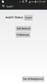 AutoFi is a tool that automatically turns Wi-Fi on and off. It's quite useful if you only use your wireless service at work or at home. AutoFi supports unlimited locations! Simply add your Wi-Fi name(SSID) and let the app work on the background.
