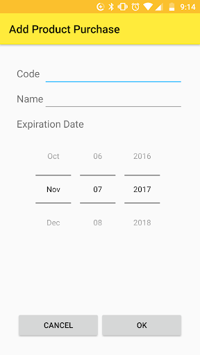 the day of purchasing a product, add information about a the purchase by tapping the plus icon on the main screen.