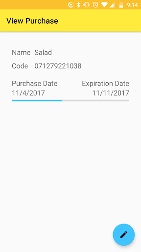 this screen views the purchase information, featuring a progress bar indicating the percentage between purchase and expiration dates.