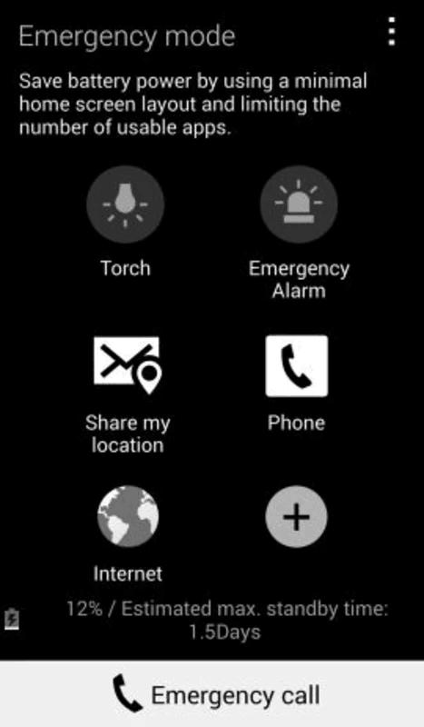 All you have to do to use these services is to access the Safety assistance main menu and tap on the different icons. For example, you can activate the emergency mode which turns on your smartphone's dark theme to save battery. This theme saves battery by only giving you access to essential services.