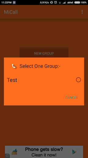 On selecting creating a group a pop asking the name of the group will open , on entering the name a list of contacts will open to select the contacts needed to be added in the group.