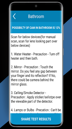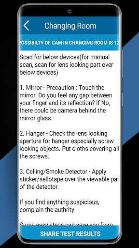 There are a few spots where hidden camera can't get detected easily. You can not see them with uncovered eyes. In this way, all things considered, utilize our app and detect unwanted hidden cameras and dispose of them. Remain protected and strain free with this app.