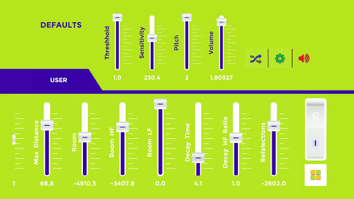 - Control in the volume, pitch, sensitivity, stereo pan, spatial blend 2D/3D...