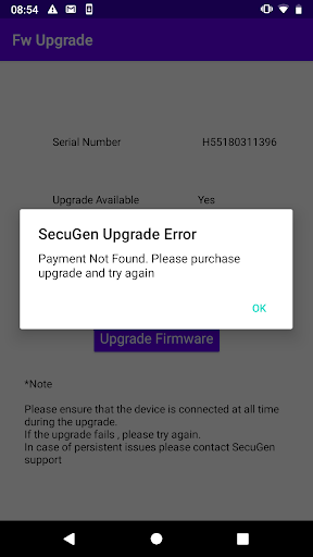 2. Certain devices, having old firmware , when used along with SecuGen RD service repeatedly throw 301 error , Firmware upgrade also fixes that issue.