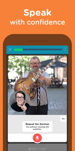 Learn German with our language learning app and focus on improving your speaking and listening skills, as well as your vocab knowledge and grammar comprehension. We do this by building interactive experiences using videos of native speakers, so you'll learn the best way possible.