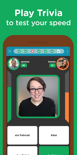 Included in this language learning app, you can test your German comprehension by competing against other German language students in an interactive trivia game. This fun feature adds a playful element to your language learning journey and enlarges your vocab knowledge in no time.