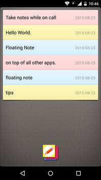 Floating Note that stay on top of all other apps is a floating note or tips app! Easily dock them to the left side to keep your screen real-estate at full potential. Useful for quick note taking and keep all you need to remind accessible. You can have your notes visible or docked while you do other tasks. Closing a note will auto-saved, and see them in the note list page. you can editdeleteshare note in the note list. All stickies are auto-saved! Floating Note is also a notepad