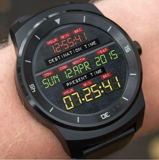 The layout has been altered to fit round faces, with an emphasis on current time.