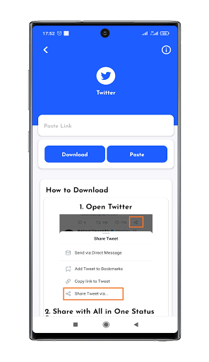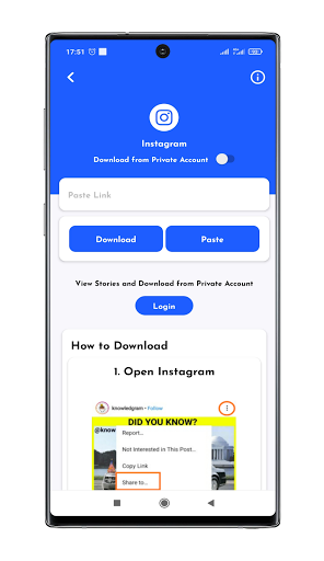 - You can download videos and images from Instagram by copying images and video's link and pasting into the app.