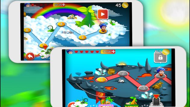 Story starts in Jungle World where you have to fight with jungle monsters like monkeys, snakes and more. In jungle world there is 20 levels, same in other worlds. Also you can find 3 other worlds like lava cave world, castle world.