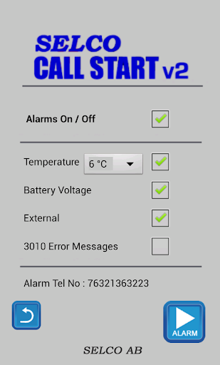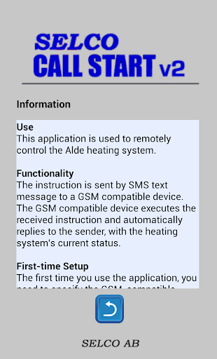 This app is used for remote management of "Call Start GSM" of Selco AB. A new code set is used in "Call Start v2" to allow new features and more options than in the PhoneUp app