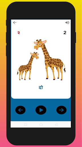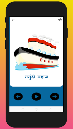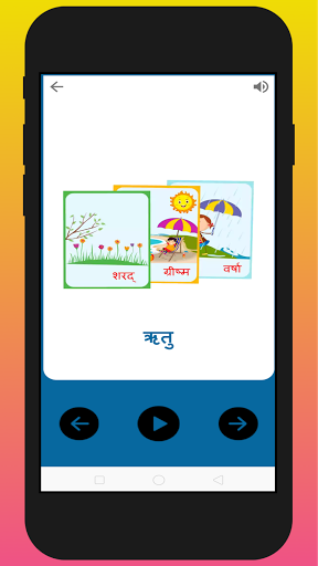 Hindi numbers, Days, Months, Human body parts, Vehicles and many more with pictures and sounds.