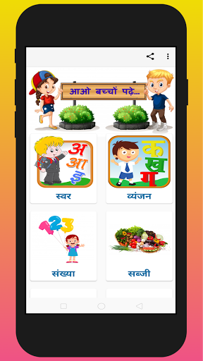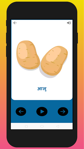 Our application contains Hindi alphabets, Wild animals, Domestic animals, Colors, Fruits, Vegetables,