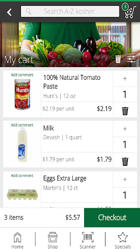 Using A to Z kosher's shopping app will let you search and order products from the store, quickly and easily.
