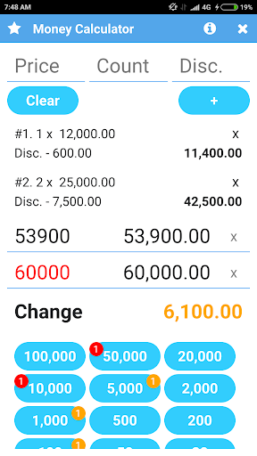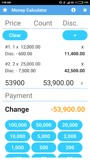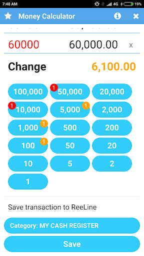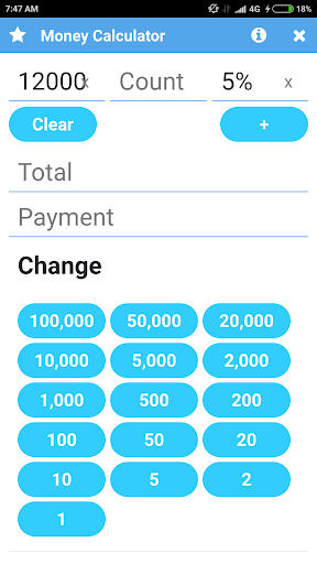 Money Calculator is an app to help you calculate faster for changes with a suggestive information.