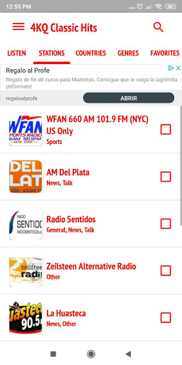 - Choose between sports, news, latin music, hits, pop, rock and others musical styles.