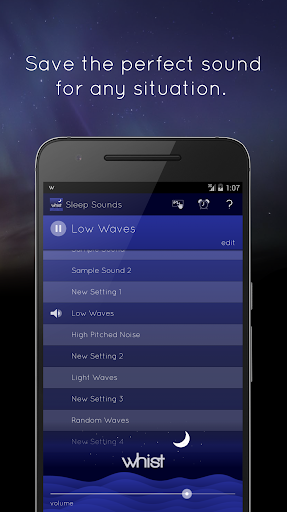 With its flexible controls, Whist - Sleep Sound Designer can create an unlimited variety of customized sounds to help you sleep.