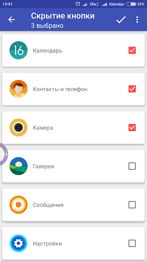 - Enable the button hiding for any application on your device.