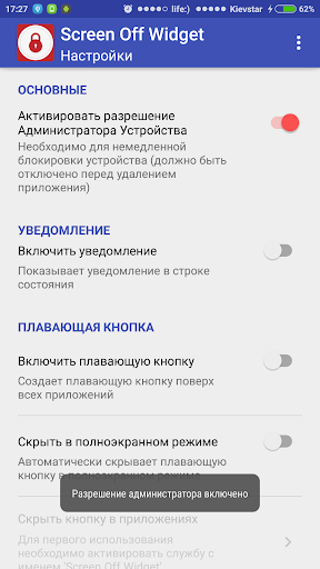 Attention! This app uses the Device Administrator permission for locking device immediately.