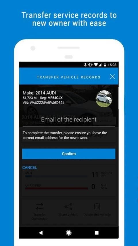 • Transfer Vehicle Records- pass on your digital service records to the new buyer