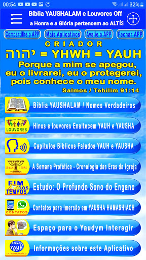 Esta aplicación es un diseño de Yauh Vuvh, es el resultado de la unión de varios estudios de hermanos Yaudi, son estudios en videos, audios, textos en PDF, imágenes y alabanzas traídas por cada hermano En Yausha י Unidosza, algunos estudios en textos fueron corregidos y agregados, y otros han servido como base para las mejoras, hoy estamos agradecidos porque contribuimos en esta gran misión que llamamos "Ministerio de Yaushalam", reconozco que fue un Propósito de Yauh Vuvh Yauh y que cada uno de nosotros lo hemos sido y solo contribuiremos al trabajo, y el resultado es esta aplicación relevante y edificante, resultante de la aprobación, la designación, la fuerza, la capacitación y la orientación de Yauh Vuvh a través del Ruach Kadush, por lo que nadie podrá derrocar lo que es el diseño de Yauh Vuvh, porque todo ha sido, es, y estará sobre el control de Yauh יzosumpeja, así que juntos formamos el cuerpo de la congregación de Yausha י Unidos, y por lo tanto: