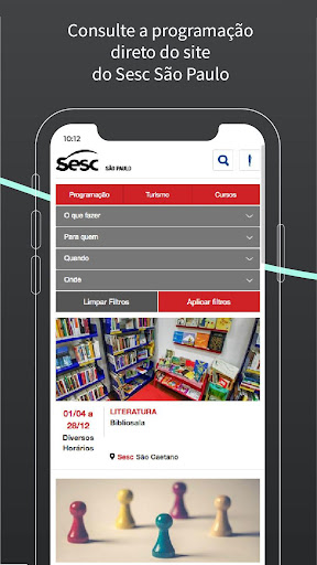Dito makikita mo ang programming at address ng mga yunit, mga tiket sa mga tiket at akreditasyon, magasin, katalogo, virtual na pagbisita sa mga yunit ng SESC at eksibisyon, panoorin ang SESCTV na hinihiling, bukod sa iba pa.