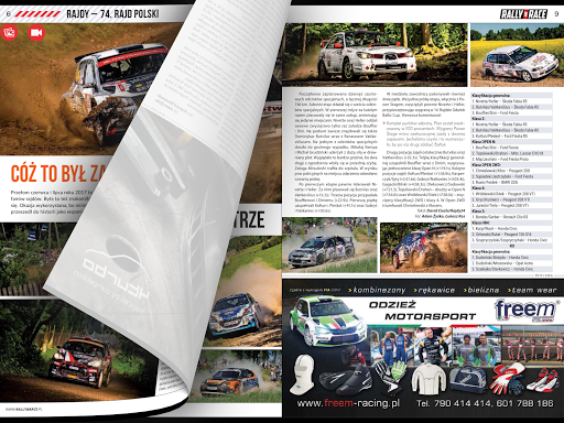 Magazyn sportów motorowych. Rajdy Mistrzostw Świata WRC, Mistrzostw Europy ERC, Mistrzostwa Polski i Okręgowe, KJSy, SuperOesy, RallySprinty, wyścigi płaskie oraz górskie, drift, karting, rallycross w czystej postaci. Dodatkowo jako jedyni szczegółowo relacjonujemy ligę kierowców amatorów. Kilkanaście wydarzeń z całej Polski w każdym numerze z wynikami oraz klasyfikacjami łącznymi. Wypowiedzi uczestników oraz organizatorów. Co weekend w Polsce odbywa się kilka mniejszych lub większych imprez sportowych. Prawie na wszystkich obecni są nasi reporterzy, którzy przyglądają się rywalizacji. Jesteśmy ponad 5 lat na rynku. Zrelacjonowaliśmy już tysiące wydarzeń i opublikowaliśmy setki tysięcy zdjęć.