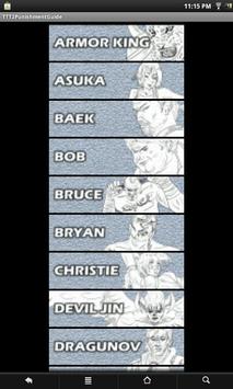 This application lets you choose any four (4) characters out of Tekken Tag Tournament 2, two in your team and two in your opponents team. you can then choose a move from your opponents move list and the application will show you all of the moves that can punish it for of your characters. it also shows input, frames, damage and hitbox data.