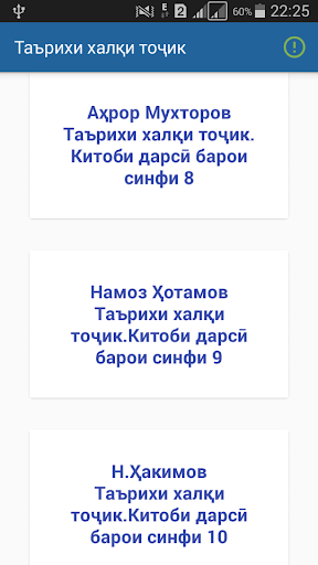 Дар барномаи мазкур китобҳои дарси аз фанни таъри халқи тоҷик оварда шудаанд.Дар як барнома китобҳои таърихи халқи тоҷик синфҳои 8, 9 ва 10