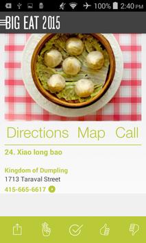 Use the GPS map function to figure out which Big Eat items are closest to your location, and keep a running checklist of your personal progress as you go. You can even compete with you friends to see who has eaten the most dishes.