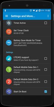 - Network Power Save Mode : Choose network type for power save mode (when screen off,smart network(wifi enabled or mobile data disabled) or use with widget).