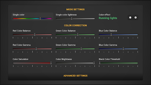 Ambient light Application for Android is one of the few programs for Android based devices that allows you to implement Ambient light backlighting directly on your smart TV with no need of PC. There are three operating modes, that are: