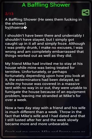 WARNING: This App ( Sex Story in English ) SSE discusses sex in a mature manner and is intended for only a mature audience (18+) SSE ( Sex Story in English ) is a Romantic XXX rated English Stories. In SSE ( Sex Story in English ) You got all Update New English Sex Story. Only the genre you like! Different Categories and Stories to choose from! Rate it 5 for our application to be improved. This app is designed for those people who can read English. This app contain English Sex stories based on real life experiences, different people narrated their stories. Story Categories -------------------------------------- 1. Lovely Sex Stories 2. Adult Sex Stories 3. Couple Sex Stories 4. Erotic Sex Stories 5 Emazing Sex Stories 6 Romatic Sex Stories 7. Real Sex Stories These are some of the best collections of sex stories. ------------------------------ 1. By Chance or Destiny 2. Drunk Step Mom 3. King Size Bed 4. Lust For Mother In Law 5. My Wife was Gang Banged many more................ Features: ------------------------- * Latest Hindi Sex Stories. * No need Internet connection. * No need signup and registration. * You can mail your suggestion to us to improve this app. * Pin Protection * Pin Change * You can share HSS App on Social Network also More stories and features coming soon. Enjoy the best Sex Stories app and rate us 5 today.... Download, Rate, Enjoy and Share! Note: Only For 18+. KeyWords : Sex Story, English Sex Story, Sex Story in English, ESS, Latest English Sex Story, New English Sex Story