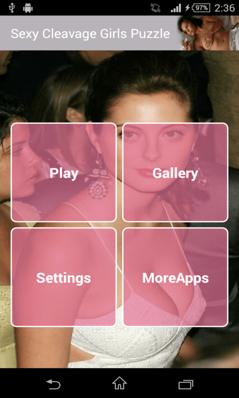 Sexy Cleavage Girls HD Puzzle is free android app. This contains many HD quality pics Its a jigsaw puzzle application. It also give you awesome gallery. By this gallery you can save image into gallery or set as a wallpaper Its a very simple app any body can use it , It contains Hot and sexy Girls Gallery Features- ----------------------------- This contains many HD quality pics Its a jigsaw puzzle application. It also give you awesome gallery. You can also set HD image as wallpaper DISCLAIMER--- Its a free android app thus it contains some ads, but it doesn't contain any push ads or home screen ads